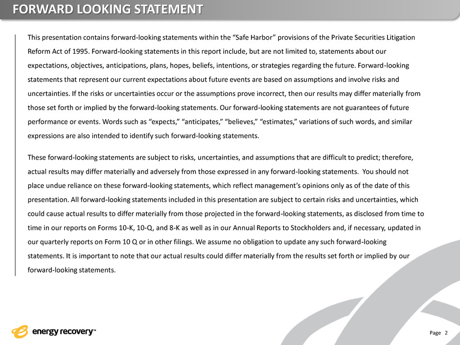 This presentation contains forward-looking statements within the “Safe Harbor” provisions of the Private Securities Litigation