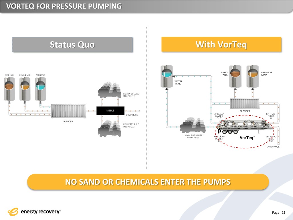 VORTEQ FOR PRESSURE PUMPING Status Quo With VorTeq NO SAND OR CHEMICALS ENTER THE PUMPS Page 11