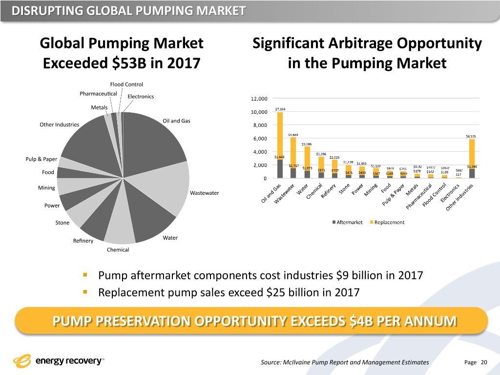 DISRUPTING GLOBAL PUMPING MARKET Global Pumping Market Significant Arbitrage Opportunity Exceeded $53B in 2017 in the Pumping Market US dollars in millions in dollars US ▪ Pump aftermarket components cost industries $9 billion in 2017 ▪ Replacement pump sales exceed $25 billion in 2017 PUMP PRESERVATION OPPORTUNITY EXCEEDS $4B PER ANNUM Source: McIlvaine Pump Report and Management Estimates Page 20