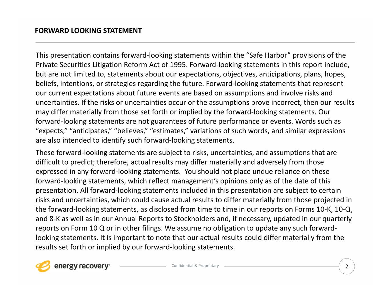 Exhibit 99.1 Energy Recovery Investor Presentation August 2020 NASDAQ: ERII