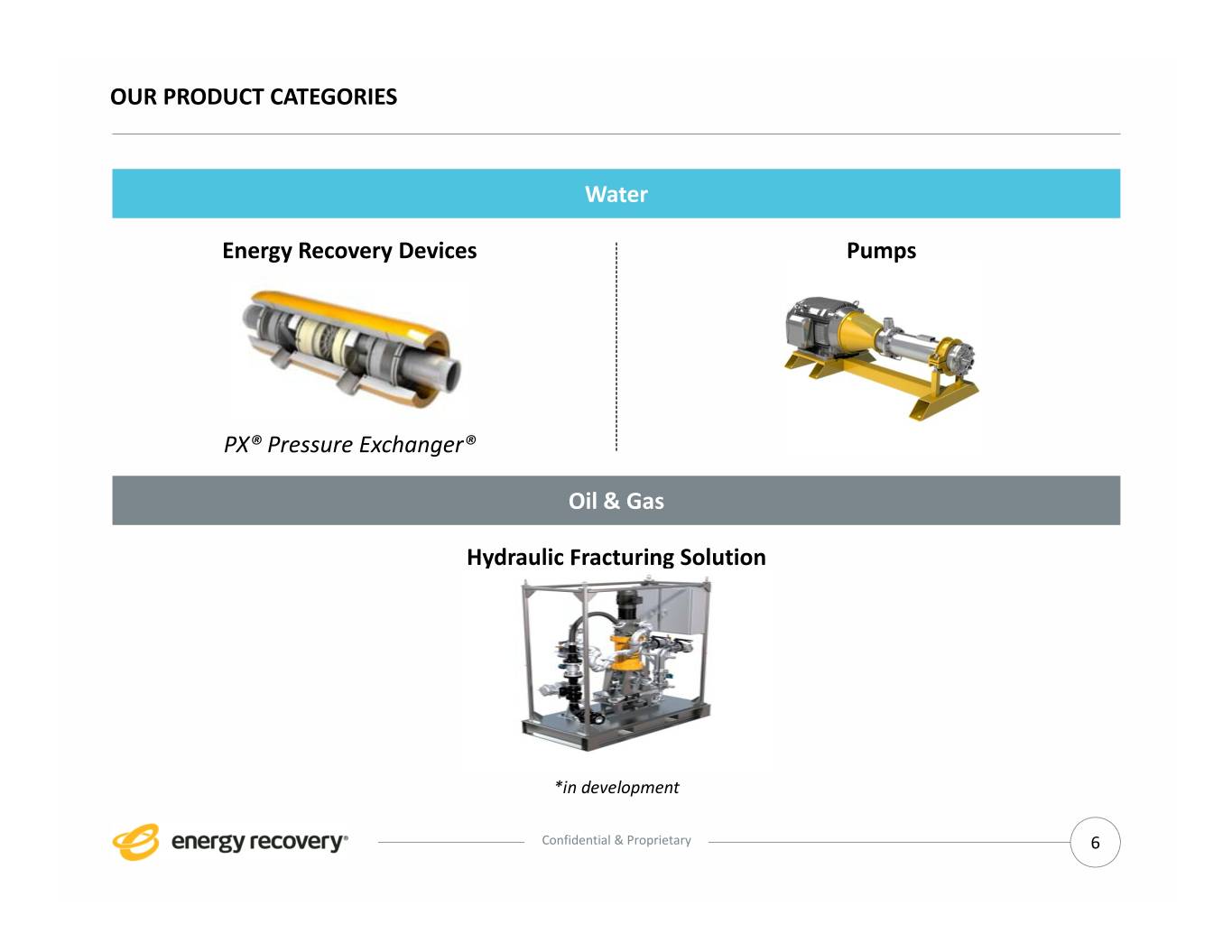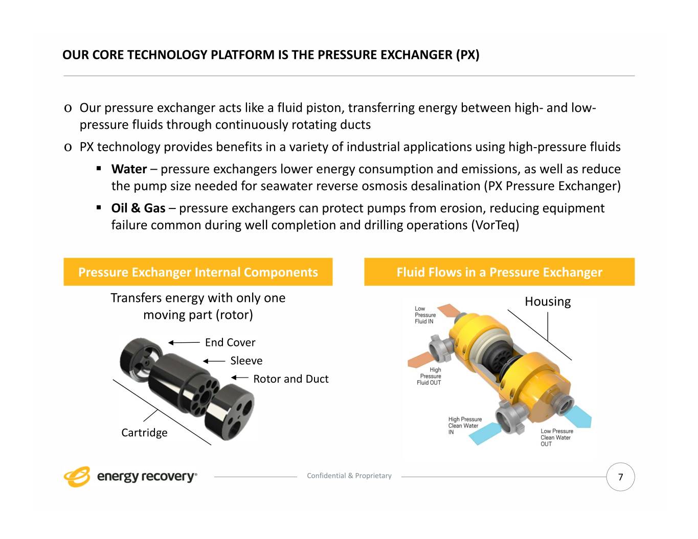 OUR PRODUCT CATEGORIES Water Energy Recovery Devices Pumps PX® Pressure Exchanger® Oil & Gas Hydraulic Fracturing Solution *in development Confidential & Proprietary 6